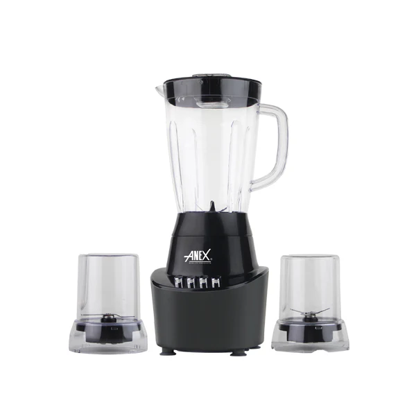 The Anex AG-6044 Deluxe Blender Grinder is a powerful and versatile kitchen essential designed to make your food preparation quick and effortless. Equipped with a strong motor, it easily blends fruits, crushes ice, and grinds spices or coffee beans with precision. Its durable stainless-steel blades ensure smooth and consistent results every time. With multiple speed settings and a pulse function, you can achieve the perfect texture for any recipe. The sleek design and sturdy build make it a perfect addition to any modern kitchen.