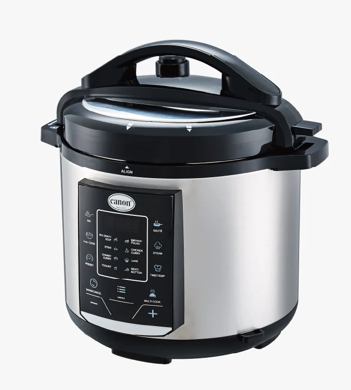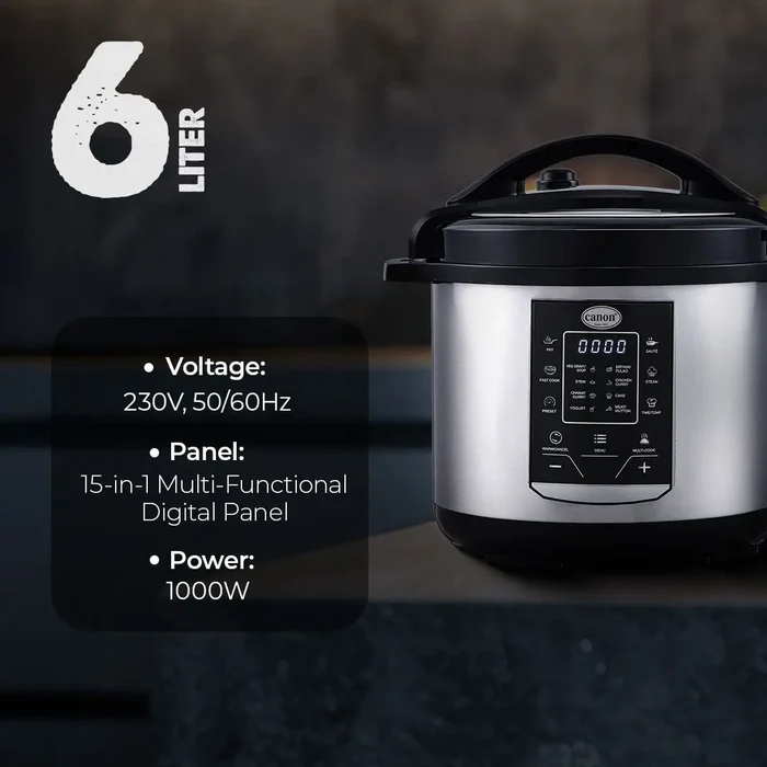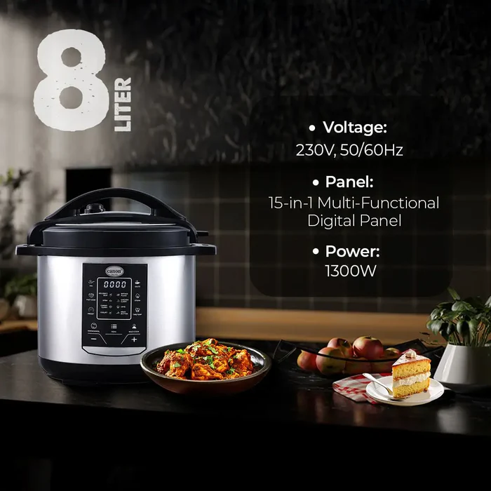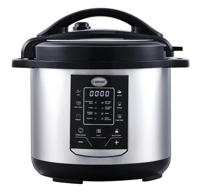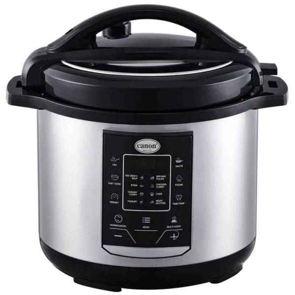 The Canon Electric Pressure Cooker CHA-EPC-M158 is a modern kitchen essential designed for fast, convenient, and healthy cooking. With its powerful performance and advanced safety features, it simplifies meal preparation while retaining the natural flavors and nutrients of your food. This versatile cooker allows you to prepare rice, meat, beans, soups, and more in just minutes. The durable stainless steel inner pot ensures long-lasting use, while the digital control panel provides easy operation and precise cooking settings. Ideal for busy households, it combines efficiency, safety, and taste in one stylish appliance — making everyday cooking effortless and enjoyable.