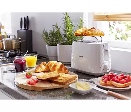 Start every morning with golden-brown toast just the way you like it using the Philips Toaster HD2581/01. Featuring 8 browning levels, wide variable slots, plus reheat and defrost modes, this toaster handles everything from frozen bread to delicate pastries. The built-in bun warming rack gently warms rolls and buns, while the high-lift lever ensures smaller pieces come out safely without the risk of burning fingers. A wipe-clean removable crumb tray keeps maintenance fuss-free, and the auto shut-off and cancel button let you stop or protect the device at any time. Boasting 830 W power (220-240V, 50-60 Hz), cool-wall housing, and backed by a 2-year worldwide guarantee, it’s a reliable, compact choice for daily toast lovers.