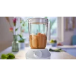 The Philips HR2041/16 3000 Series Blender combines power, simplicity, and reliability for everyday blending tasks. Its 450 W motor paired with the ProBlend system ensures smooth blending and efficient circulation of ingredients. The 1.9-liter jar (1.0 L effective volume) offers enough capacity for family servings while remaining manageable. You get one fixed speed plus a Pulse mode, giving you control without complexity. The blender is built with stainless steel blades for durability and features suction feet to minimize movement during use. When done, the detachable parts are dishwasher-safe, making cleanup quick and effortless.