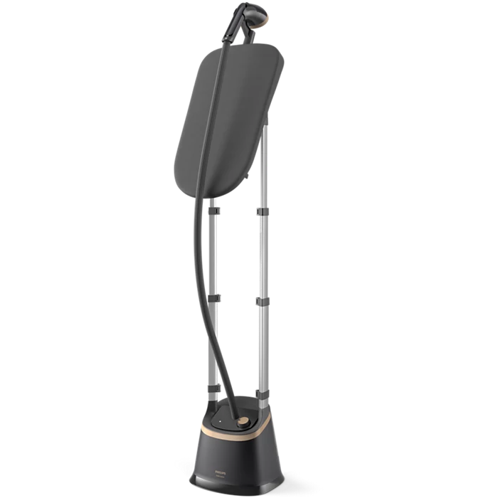 The Philips Stand Steamer 3000 Series (STE3170/80) delivers professional-level garment care with premium features. Boasting a powerful 2000W motor and 3 steam settings, it produces up to 40 g/min of continuous steam — perfect for tackling everything from delicate fabrics to thick coats. Its large 2-liter detachable water tank reduces refill frequency, and it heats up in under 60 seconds so you can get going quickly. The tilting StyleBoard offers better support while steaming, helping you press fabric against the board for crisp, uniform results. Additional features like the MyEssence fragrance infuser, pointed metal steam head, automatic shut-off, and safety for all ironable fabrics (even silk) make this steamer a versatile and reliable choice.