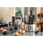 The Philips HR7778/01 from the 7000 Series is built for those who demand power, versatility, and speed in the kitchen. Its 1300 W motor handles tough tasks like dough kneading, shredding and slicing with ease, aided by the PowerChop system for superior chopping performance. You get a large 3.4 L main bowl (usable 2 L) and a 2.2 L blender jar to cover everything from soups, doughs, and smoothies in one go. The processor includes 12 manual speeds + pulse, plus three convenient one-touch auto buttons for whipping, dough and ice functions. The accessory set is generous: metal kneading hook, double balloon beater, stainless steel S-blade and discs (fine/coarse slicing, shredding, julienne, etc.), plus citrus press. Designed with everyday life in mind – it has non-slip feet, a robust stainless steel body, safety interlocks, and dishwasher-safe detachable parts.