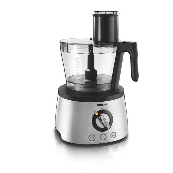 The Philips HR7778/01 from the 7000 Series is built for those who demand power, versatility, and speed in the kitchen. Its 1300 W motor handles tough tasks like dough kneading, shredding and slicing with ease, aided by the PowerChop system for superior chopping performance. You get a large 3.4 L main bowl (usable 2 L) and a 2.2 L blender jar to cover everything from soups, doughs, and smoothies in one go. The processor includes 12 manual speeds + pulse, plus three convenient one-touch auto buttons for whipping, dough and ice functions. The accessory set is generous: metal kneading hook, double balloon beater, stainless steel S-blade and discs (fine/coarse slicing, shredding, julienne, etc.), plus citrus press. Designed with everyday life in mind – it has non-slip feet, a robust stainless steel body, safety interlocks, and dishwasher-safe detachable parts.