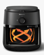 The Philips NA120/00 1000 Series Airfryer combines simplicity and performance to deliver healthier, tasty results with minimal effort. With a 1500 W RapidAir system and its unique StarPlate bottom, it circulates heat evenly to crisp food on the outside while keeping interiors tender, using up to 90% less fat than traditional frying methods. Its 4.2 L capacity is ideal for snacks and side dishes—able to hold ~500 g fries or 6 chicken drumsticks in one go. You can choose from 12 cooking modes and adjust time (up to 60 minutes) and temperature (80–200 °C) to match your recipe needs. Cleanup is easy thanks to its nonstick StarPlate basket (dishwasher-safe), cool-touch exterior, auto shut-off, and integrated cord storage.