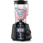 The Philips Daily Collection Blender HR2141/92 is built for everyday blending, from smoothies and purees to ice-crushing and dressings. Its 550 W motor delivers strong performance while maintaining energy efficiency. The 2.0 L plastic jar gives you ample capacity for family servings, while the ProBlend blade system ensures consistent mixing and smooth results even with tougher ingredients. You have 2 speed settings plus a pulse function to control texture. For ease of use, it includes non-slip feet for stability, a wide XL pouring spout to reduce spills, and many parts are dishwasher-safe (except the motor unit and blade assembly).