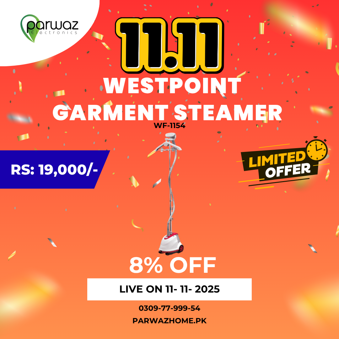 The **Garment Steamer WF-1154** is designed to keep your clothes fresh, wrinkle-free, and ready to wear in minutes. With its powerful steam output, it quickly removes creases from all types of fabrics, including delicate and heavy materials. The large water tank ensures continuous steam for longer sessions, while the adjustable steam control lets you customize the intensity for different garments. Lightweight and easy to use, it features a sturdy design with smooth mobility and quick heat-up time. Perfect for both home and professional use, the WF-1154 delivers convenience, efficiency, and superior garment care.