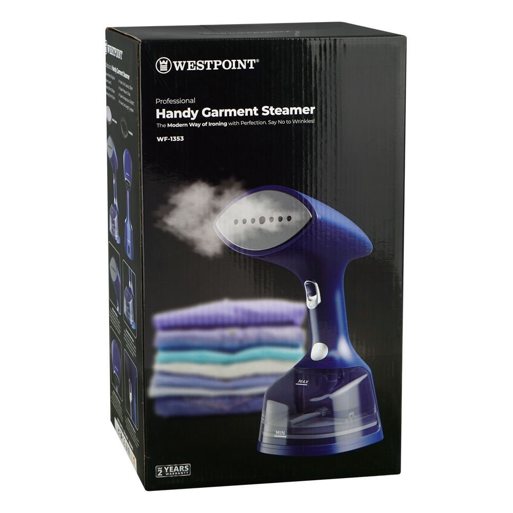 The Westpoint WF-1353 Professional Handy Garment Steamer brings you the modern way of ironing, making clothes fresh, crisp, and wrinkle-free in minutes. With a powerful 1500W motor, it delivers a steam rate of 28±3g/min at a high temperature of 140–180°C, ensuring effective steaming for all fabric types. Its 2 steam levels, 300ml water tank, and fast heating time of just 25 seconds offer convenience and efficiency. Designed with leak water protection, 1.0 bar steam pressure, and a 2-meter cord, this garment steamer provides safe, quick, and hassle-free garment care at home.